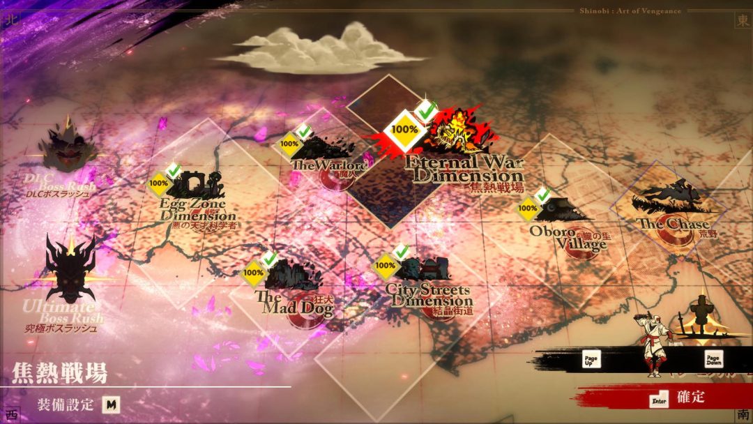 フィールドには、『SHINOBI 復讐の斬撃』本編で幾度となく倒してきた、いつもの雑魚敵が出現する。戦い方は通常のステージと変わらないため、序盤こそ落ち着いて対処することができた。しかし、進めていくとやっぱり一筋縄ではいかない。メインストーリーにはなかった、フィールドに広く存在する炎のギミックに翻弄され、敵の容赦ない猛攻に苦戦する場面が増えていく。何度も挑戦して、ようやくクリアにこぎつくと、新たにボスステージ「魔人」が解放された。