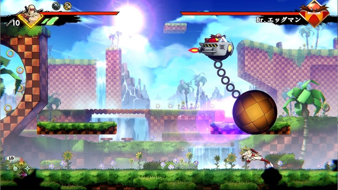 そして、自称「悪の天才科学者」Dr.エッグマンとの対決が始まる。エッグマンは「エッグモービル」に乗っており、その機体からさまざまな武器を出して攻撃してくる。広範囲におよぶ攻撃手段をいくつも出してくるため、素早い回避が欠かせない。なお、エッグマン自身は常に飛行しているため、戦いは主に空中戦となる。ステージの左右に配置された2つの足場を活用しながら、空中技を駆使してダメージを与えていくのが良さそうだ。