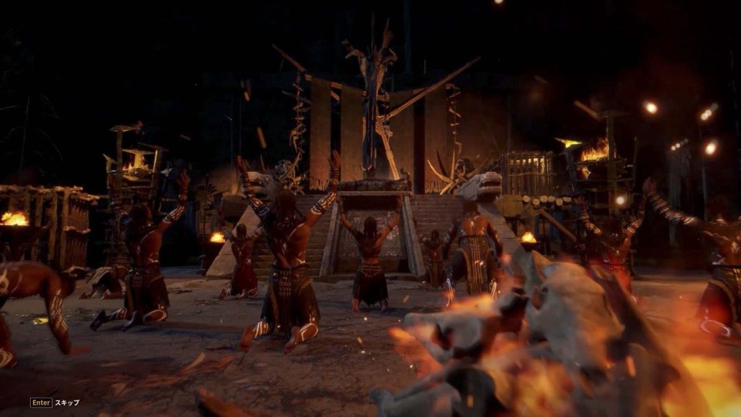 蛮人は単にプレイヤーをサポートするNPCではない。部族内の蛮人は「憑依」することで、プレイアブルキャラクターとして操作することも可能なのだ。プレイヤーの分身は「キャラクター」ではなく「仮面」であり、取り憑く相手を変えると操作キャラクターも変わる、と考えてもらえればわかりやすいだろう。