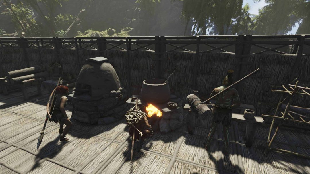 本作最大の特徴は「部族」システムだ。プレイヤーは太古の仮面の力により、フィールド上にいるほかの部族(蛮人)を「威圧」することで、自分の部族にスカウトすることができる。スカウトした蛮人は役割を割り振ることで自動的に採集や製作を手伝ってくれるほか、パーティーに加えて一緒に冒険に出ることも可能だ。