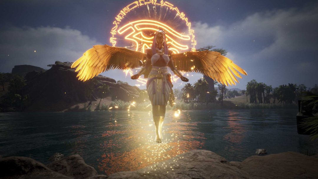 もちろんマップだけではなく、新たな部族、新たなボス、新たな仮面も追加されている。新規追加仮面は、古代エジプト神話から着想を得ており、たとえば天空の神ホルスをモチーフにした仮面「蒼穹の翼」はプレイヤーに飛行能力を与える。太陽の神ラーをモチーフにした「栄光の讃歌」は高温灼熱光線を発射できるようになる、といった感じで、いずれも神の名に恥じない強力な能力を秘めている。