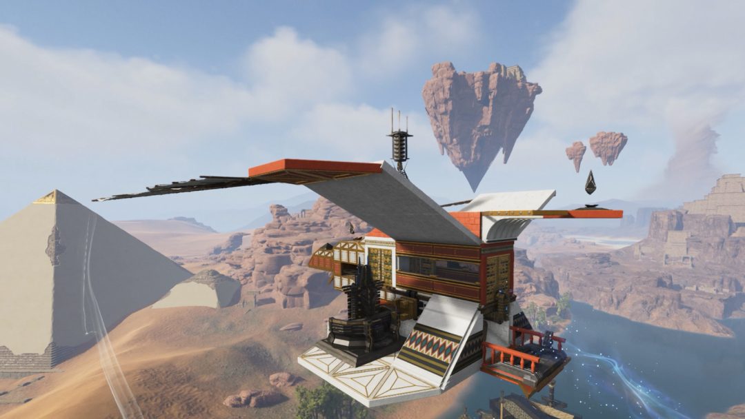 土台となる船の上に床や壁を増築して、移動式の拠点にすることも可能だ。部族をまるごと船に乗せて移動し、資源を根こそぎ奪い取ったり、敵拠点を襲撃したりと、海賊や空賊のようなプレイスタイルで遊ぶこともできそうだ。空中に浮いたさかさまのピラミッドや、NPCの飛行船団など、空の上にも多彩なコンテンツが用意されており、「雲霧の森」マップ以上に幅の広い冒険が楽しめる。