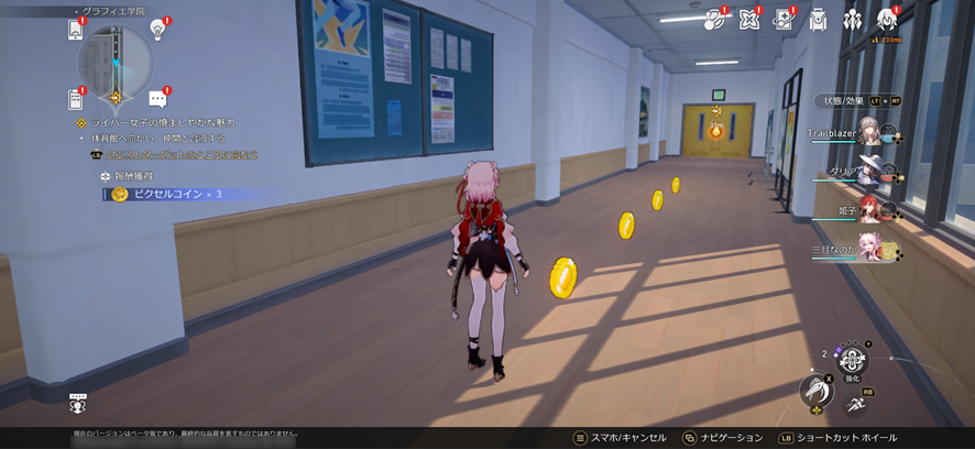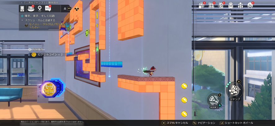 街中には、謎のドット絵風のコインが落ちていることがある。これは「ピクセルコイン」という名前で、触ると拾えて、この星での買い物に使える。