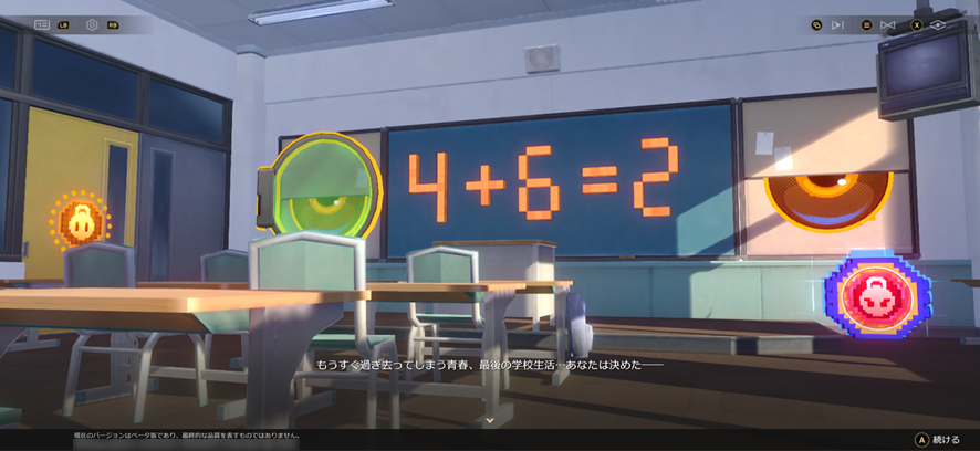 遠目に見ると普通の学校のようで、「そうそう、学校ってこんな感じだよね。うちの母校もこうだったな」とプレイヤーが親近感を覚えやすいように作りこまれているからこそ、当たり前のように紛れ込んでいるゲームっぽい要素の違和感が際立つ点も同じ。