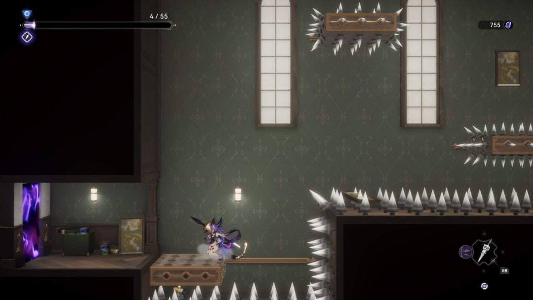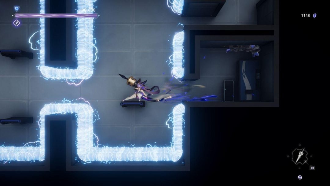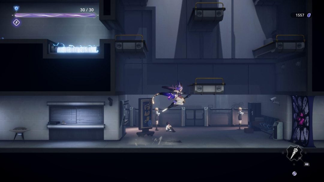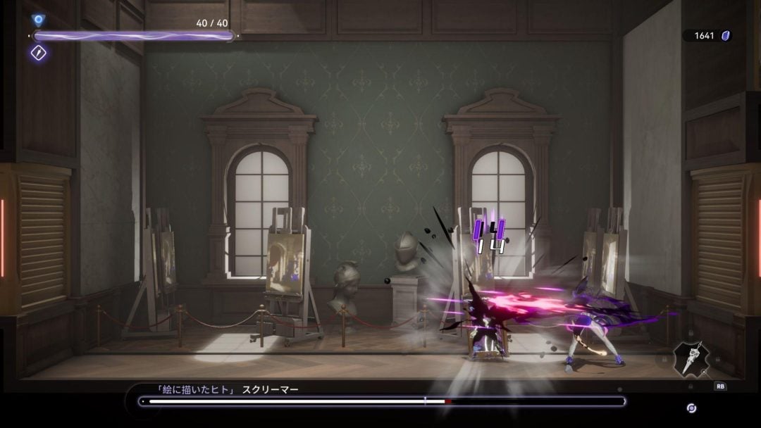 まず、先にも少し触れたが、タマのアクションが多彩で強力。たとえば、敵の攻撃を回避する主要な方法として「パリィ」と「バックダッシュ」があるのだが、パリィは同ジャンルの他ゲームに比べて受付時間が気持ち長めだし、バックダッシュは移動距離がかなり長いうえに後ろ入力が必要なくRTボタンひとつで出せるので緊急回避としてかなり優秀。