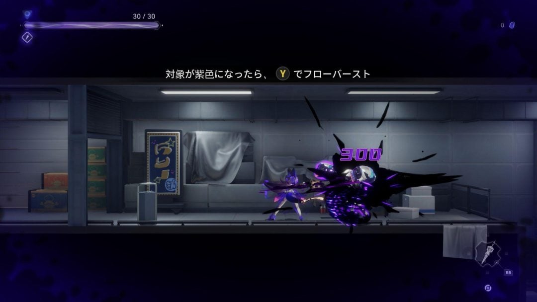 攻撃面では、Xの通常攻撃を複数回当てて敵を紫色の「フローカバー」状態にし、Yのフローバーストで大ダメージを与えるのが基本。