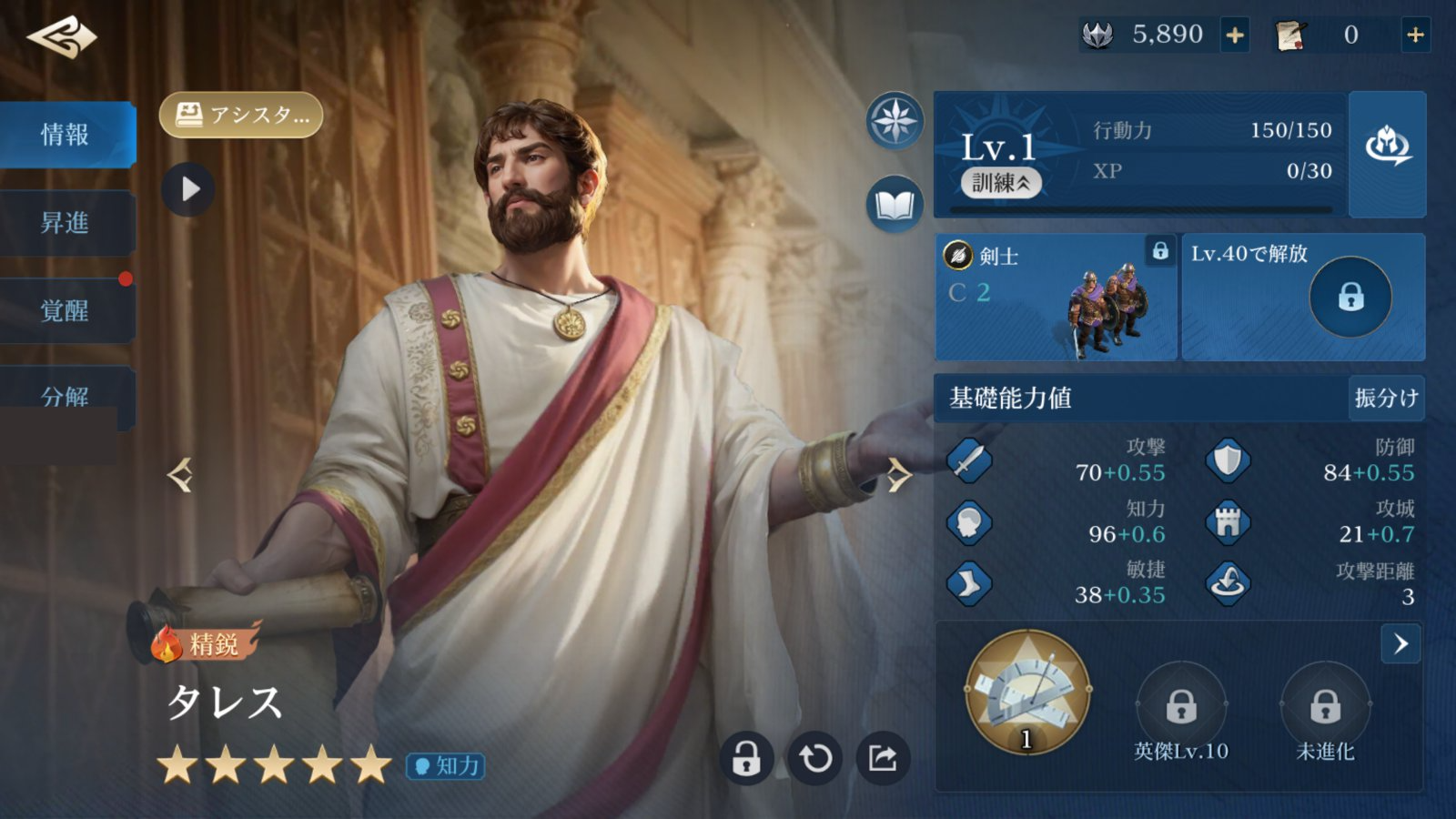 『シヴィライゼーション: 時代と盟友』の英傑「タレス」の評価とステータスを紹介する。部隊編成の参考にしてほしい。