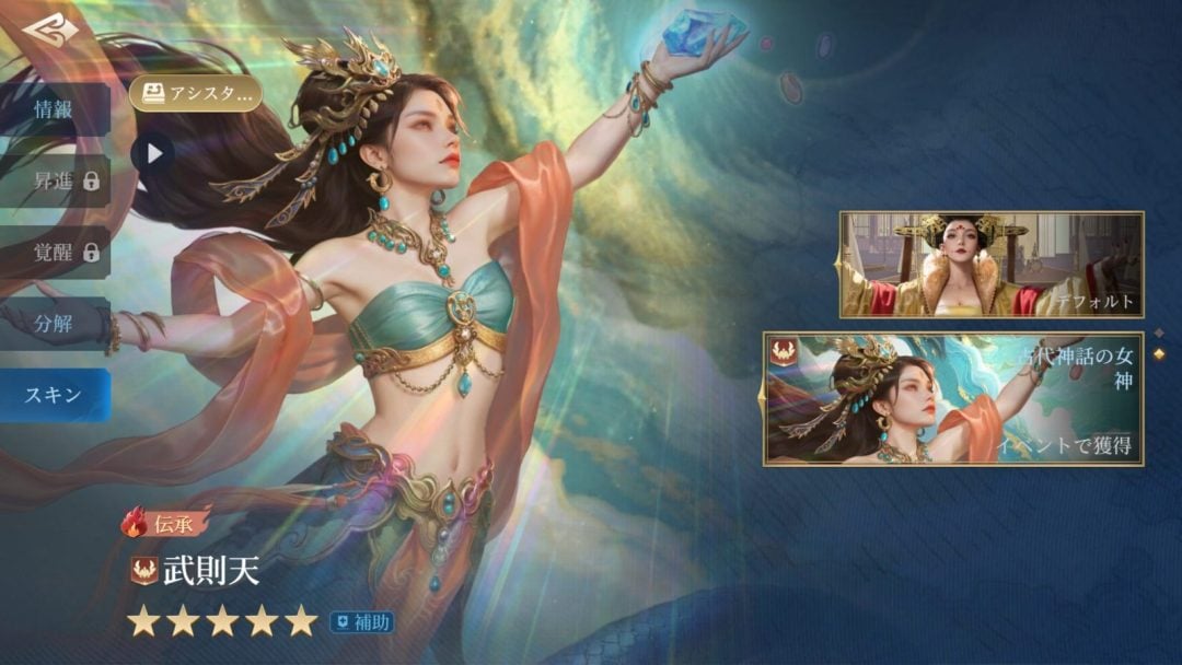 唯一の女帝(進化後):能力値ダウン効果は最大6スタックまで重ねがけ可。自身は混乱を免疫し、かつ固有スキルダメージ効果は敵軍の固定された英傑2人に対し有効となる。