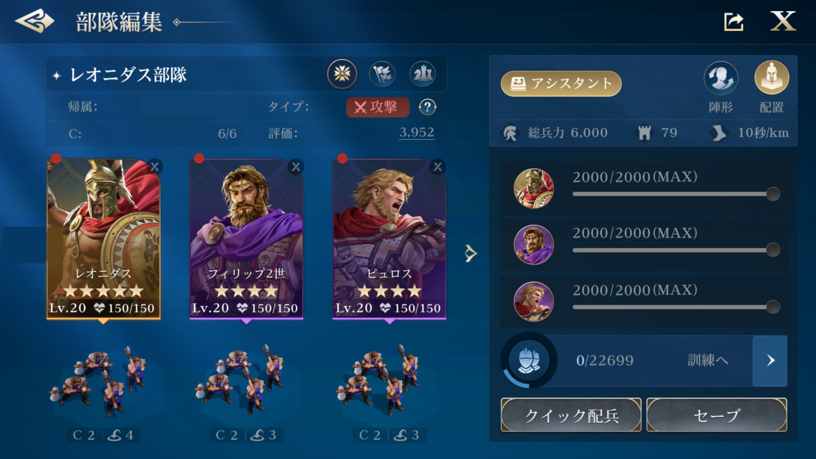 所有する英傑のレベルは20で設定され、英傑とスキルどちらもレベルアップさせることができる。ちなみにユニットは青銅時代のもののみが使用可能だ。他プレイヤーとの戦闘はできないため、自軍を鍛えることのみができるルールとなっている。