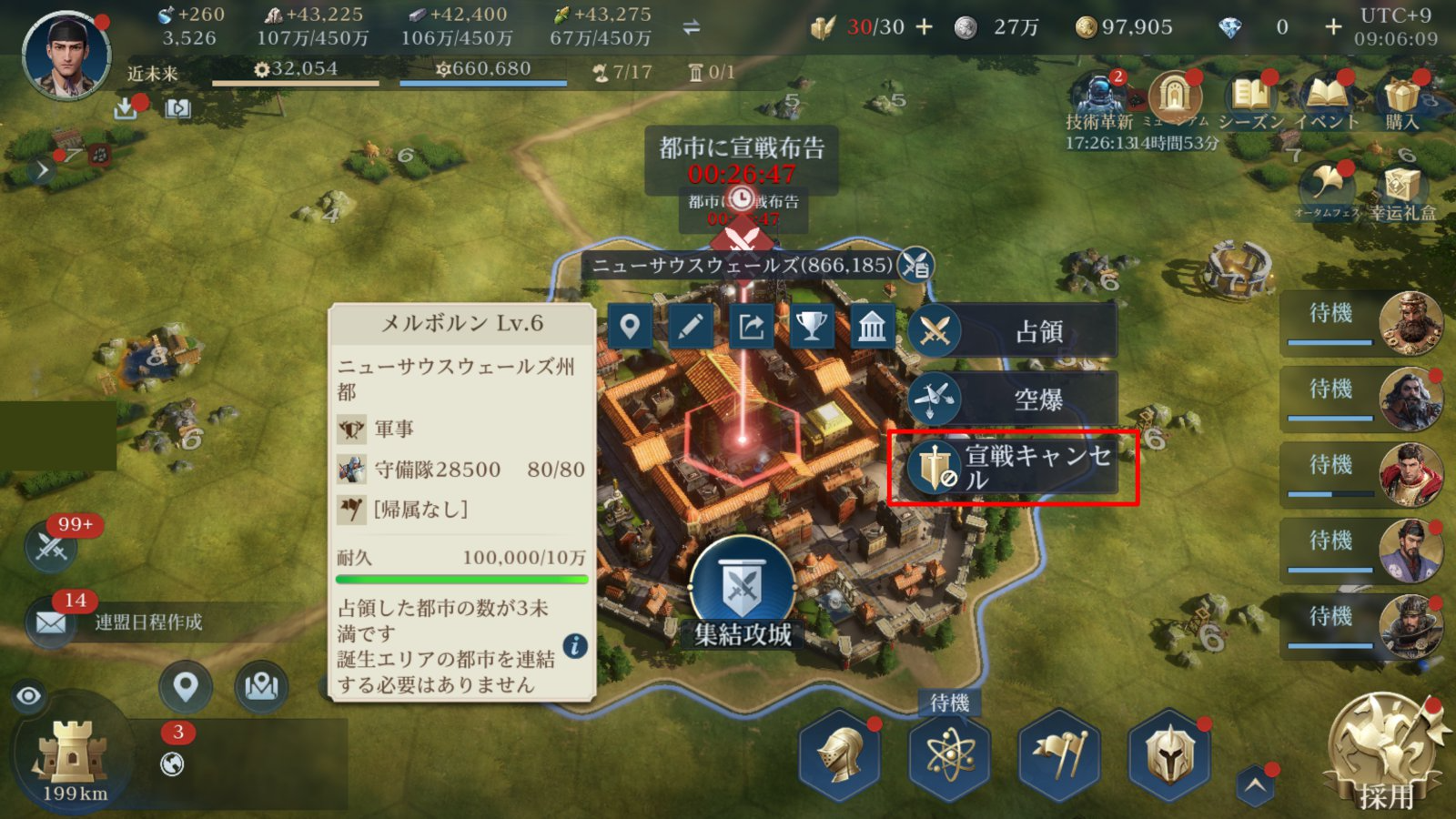 特に低レベル都市をいくつも攻城することが多い序盤や、高レベル都市を攻城するタイミングでは、宣戦令の数を計算しながら動く必要が出てくるだろう。また、奪われた都市を取り返す際にも宣戦令が必要になるため、有事に備えて常にある程度の宣戦令を持っておくのが理想だ。