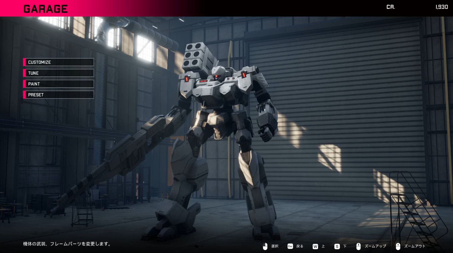 No mech game is complete without customization, and Omega Phenex allows you to fine tune both your Icarus’s apparance and specs. While different parts come with slight differences in performance, important parameters like durability, mobility and weapon performance can be adjusted through global “Tune” values, allowing you to achieve your ideal look and specs at the same time.