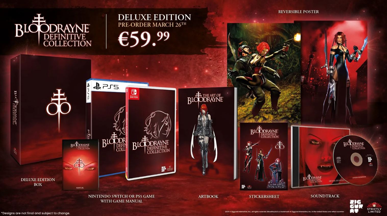 On March 26, Ziggurat Interactive and Strictly Limited Games announced BloodRayne: Definitive Collection for PlayStation 5 and Nintendo Switch, which includes BloodRayne: Terminal Cut, BloodRayne 2: Terminal Cut, and BloodRayne: Betrayal – Fresh Bites. In addition to the Limited Edition (the standard version), which includes all three remastered and expanded games, the Deluxe Edition comes with an artbook containing character and environment concept, among other merch. Many were quick to point out that the illustration of Rayne featured on the artbook’s cover mockup looked eerily familiar to an official image of Irene Lew/Sonia from Team Ninja’s Ninja Gaiden II.
