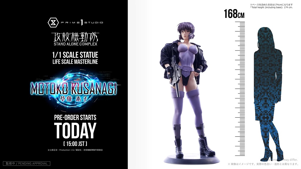 Prime 1 Studios, known for their high end collectable figures and statues, unveiled the world’s first life-size figure of Motoko Kusanagi. Standing at 168 cm, Motoko Kusanagi’s official height, and weighing approximately 36 kg (79 lbs) it cuts an impressive figure. Combined with the base, the total height is expected to be 174 cm (5’7”). The statue is priced at a “reasonable” $7,999 USD for pre-orders with the product expected to ship early 2027.