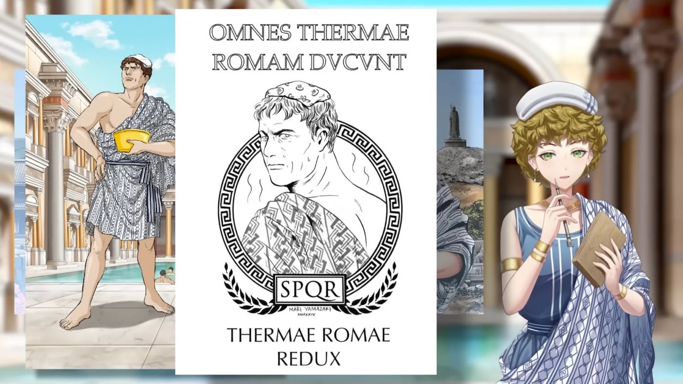 The first Thermae Minerva video delves into Minerva’s backstory (she used to live in Pompeii between 1160 and 1161 but relocated to Rome after the eruption of Mount Vesuvius), the ancient Roman wax tablet, and the origins of the Thermae Romae manga.