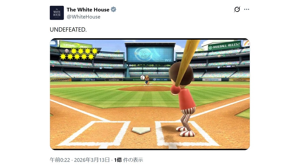 During the House of Representatives Foreign Affairs Committee meeting held on April 17, Japan’s Minister for Foreign Affairs Toshimitsu Motegi criticized the White House regarding a recent video posted to their official X account which uses footage from Nintendo’s games (source: Kyodo News). The video features footage from the United States’ recent attack on Iran intertwined with clips of Nintendo Wii’s launch up screen and Wii Sports gameplay.