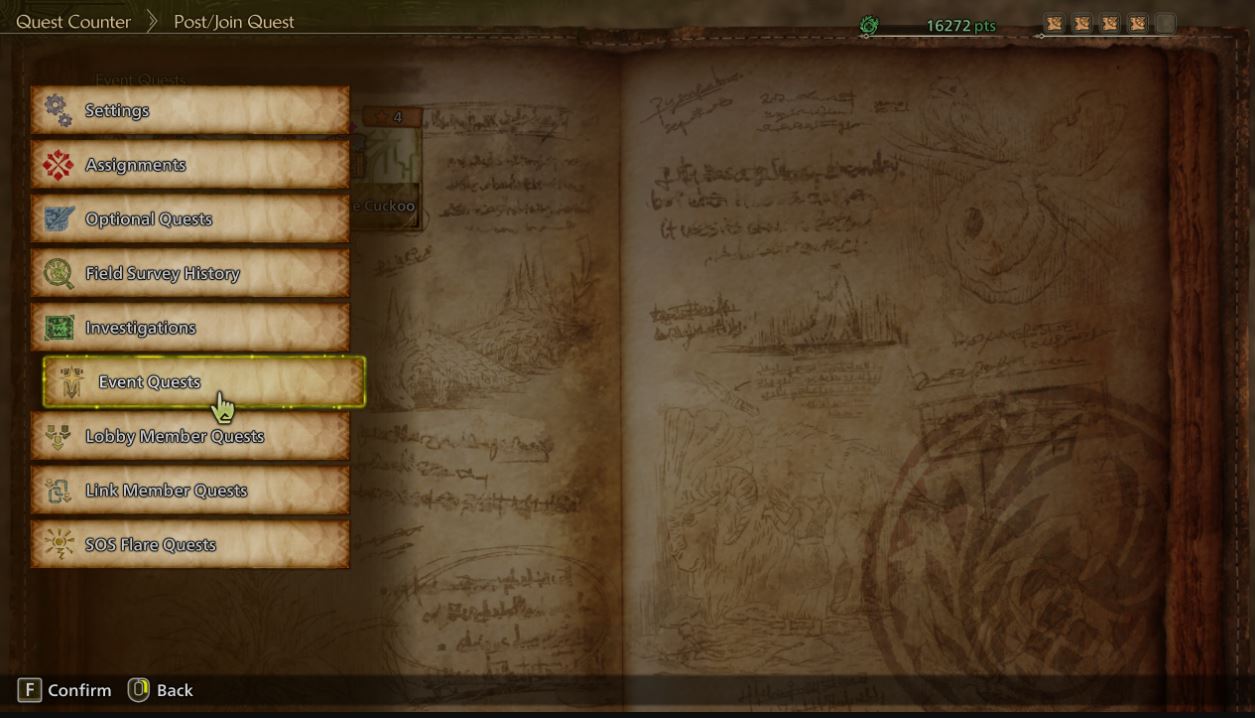To start Event Quests, either talk to Alma or go to your Tent in any Base Camp or Pop-up Camp. Go to the Quest Counter and choose “Post/Join Quest” followed by “Event Quests”.