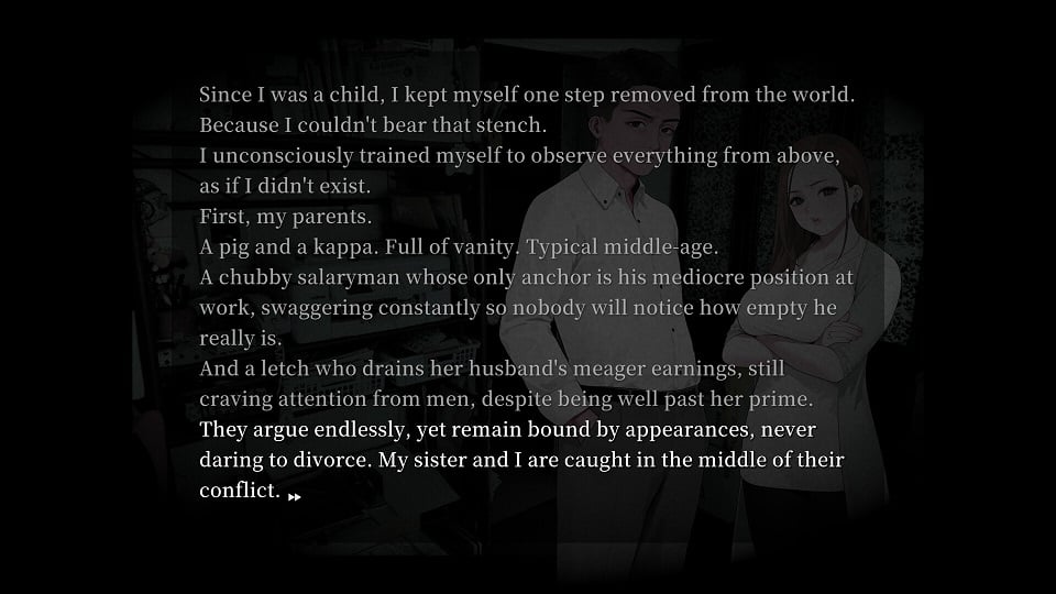 Sister Other Paranoia delves into some dark subject matter. Aside from being able to read negative thoughts, the protagonist can also use his ability to drive people to suicide. While there is no confirmation of multiple endings, it’s hard to see the game finishing on a happy note.