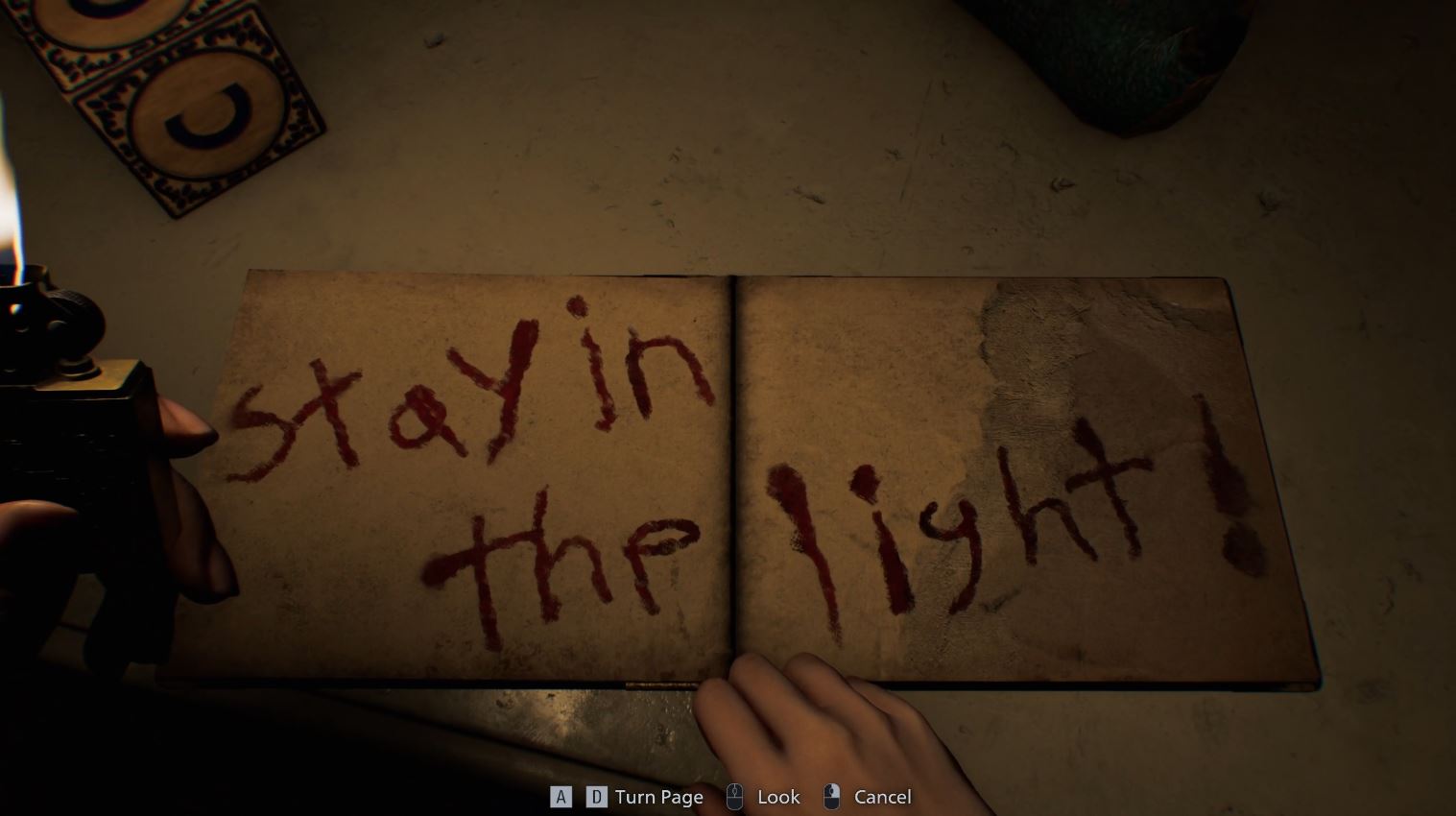 Before encountering The Girl, be sure to pick up any Empty Bottles scattered around the area (you’ll find at least one in the cabinet in the typewriter save room). There is also a book titled “Shadow Ghost” in the unlit children’s room beside the room with a typewriter. According to legend, the Shadow Ghost stalks people silently in the darkness while avoiding the light. This clue is important for all of your encounters with the Girl and teaches you to stay in the light to avoid getting your head chewed off.