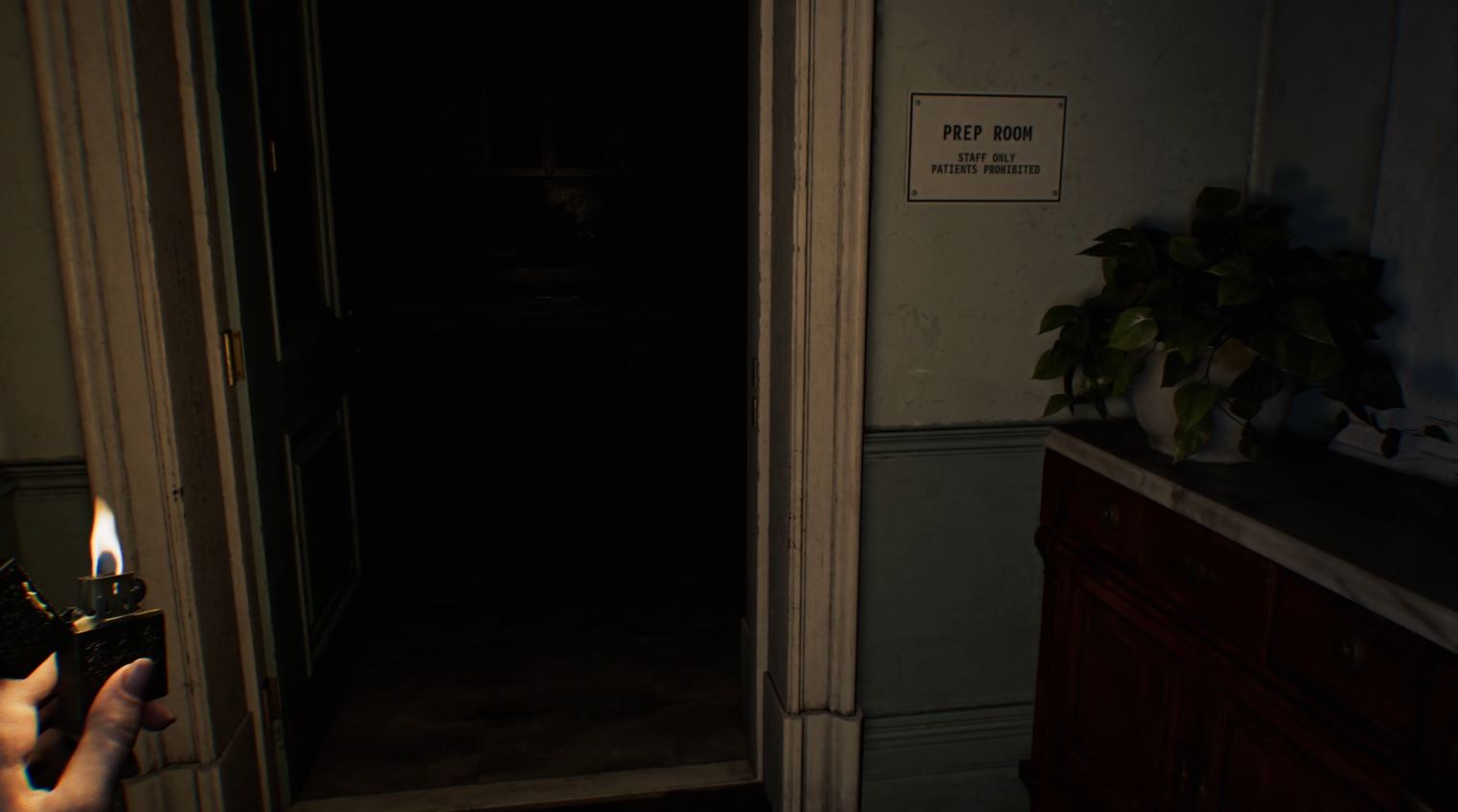 Going inside the Prep Room will trigger a cutscene that will scare the pants off you and introduce the Girl as a roaming entity. After pulling your pants back up, quickly turn around and head to the safety of the operating room. The Girl’s skin will visibly burn, and she will jump into the ceiling above.