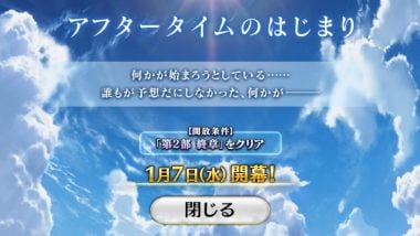 『Fate/Grand Order(FGO)』にて「第2部 終章」クリアを条件とした「アフタータイムのはじまり」が公開されている。