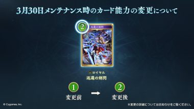 Cygamesは3月30日、バランス調整として4枚のカード能力について、変更内容の詳細を発表した。